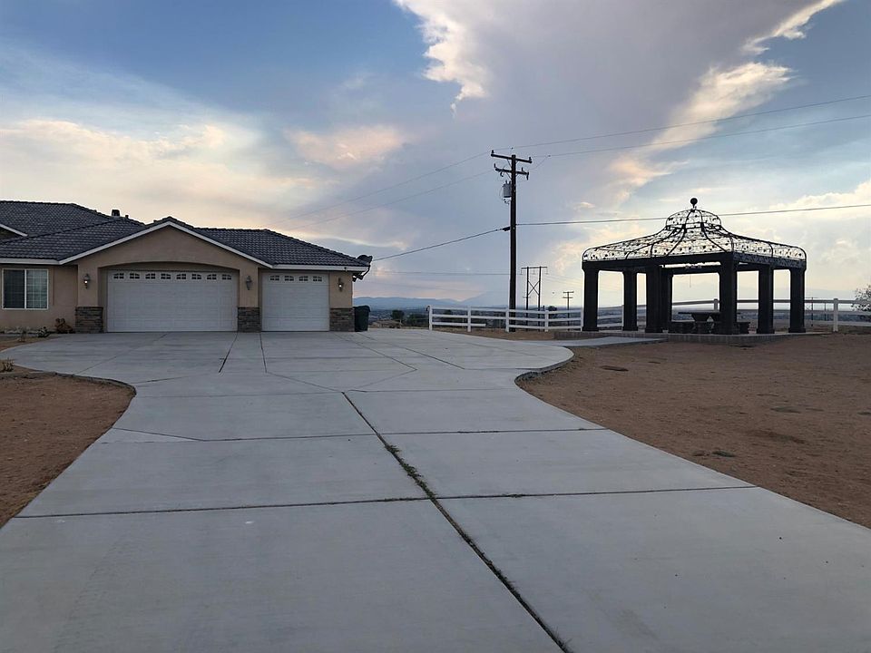 This unique and beautiful custom-built home is breathtaking inside and out. With only two houses in this culdesac, this 4 bd/3 ba home with 3,326 sq ft, boasts of a large custom courtyard with a fountain secured by wrought iron designer gates. There's alot of concrete surrounding this beauty. Landscaped, fenced, a magnificently large gazebo in front for entertaining, with built-in tables and chairs, power and lighting. Granite and hardwood flooring. Formal living room with theater, formal dining room, very large kitchen, kitchen island with sink, glass door pantry, large family room, ceiling fans throughout, built-in bay area and reading table, wardrobe mirror doors, a large Jack n Jill bathroom, large hallways, large laundry room with built in cabinets and laundry dividers, a gazebo in the back yard, and more, all on 1.25 acres. Next door is another 1.25 acre vacant lot also for sale by this Seller. Some furniture and POD with purchase option. Security Alarm. Shown by appointment only. Do not go direct. You must provide your Realtor business card for access and security. Call ahead for appointment. Submit all complete offers with EMD, Lender approval and FICOS. Incomplete offers will not be considered.