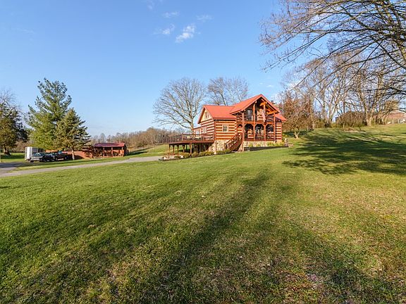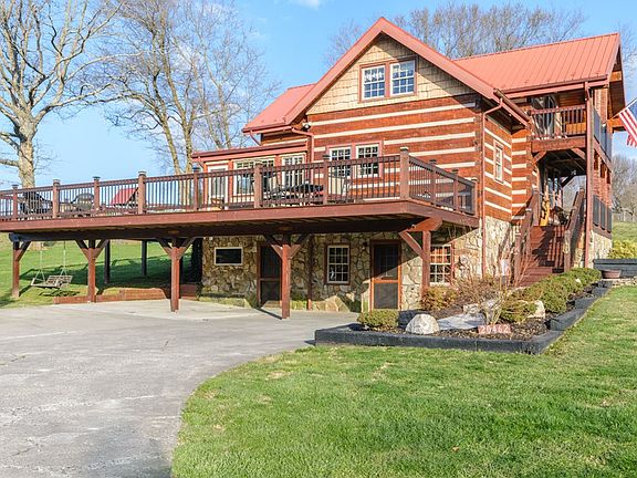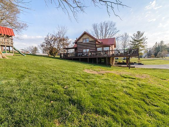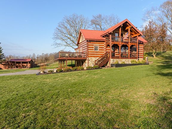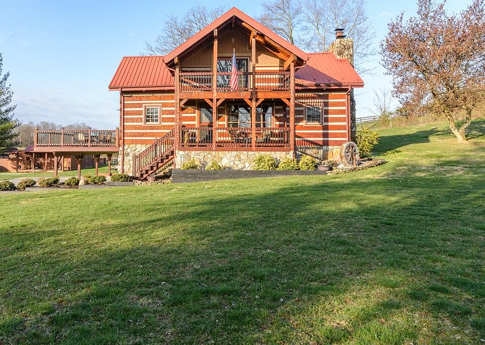 This Western Red Cedar Cabin is breathtaking. Just minutes away from the shopping/dining of exit 7, the home rests on a flat lot with picturesque views. This peaceful setting home has great amenities to include: a storage building, 1300 +/- uncovered/and covered decking for all your family cookouts. Upon entering you will see the desirable great room with beaming natural sun light, the beautiful stone fireplace & the loft sitting area overlooking the great room. The gourmet eat-in kitchen with stainless steel appliances, an island with seating providing even more counter space for your cooking needs, and gorgeous cabinets with plenty of storage. Off of the kitchen there's a possible sunroom or dining room - your choice. The master bedroom is on the first floor as well as a full tiled bathroom that is luxurious. Upstairs there are two spacious bedrooms with a full bath and a cozy sitting area for guests. The basement is finished with a unique den with another stone fireplace, a possible