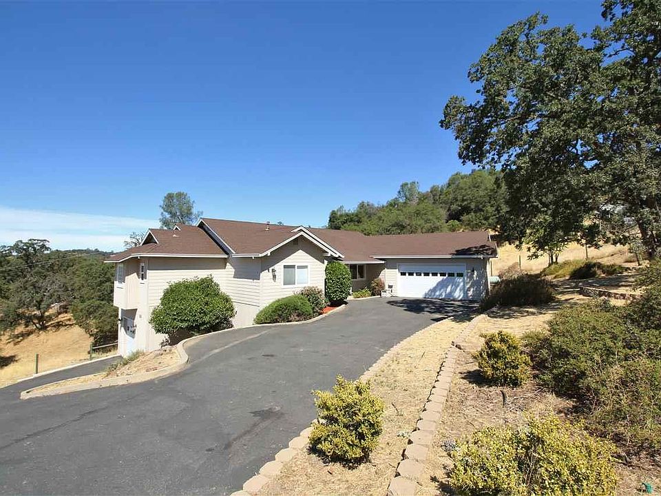 Life in the country with views! 5 minutes from the boat launch at New Melones Reservoir and 10 minutes to downtown Sonora. This semi-custom home is just under 3000 sq. ft. featuring 3 large bedrooms, 3 bathrooms plus a large bonus room and office. There is a large two car garage at the main level and a one car garage at the lower level which could be used for a workshop, boat or toy storage. The main level features a great room with gas fireplace and built in speakers, formal dining room, open kitchen with new appliances plus a breakfast nook with expansive views. The master bedroom is on the main level with access to the upper deck and also features a large walk-in closet. Relax in the master bathroom featuring a jetted tub, dual vanities and separate shower. Downstairs you will find a large family room, office and bedroom with a full bath, covered deck and access to the one car garage. This area of the home could be converted to an in-law quarters/separate living area. This home has so much to offer, nestled amongst 1.66 acres of oaks and easy access to Highway 49. Come home to the Country!