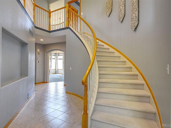 Some Homes are just Special - Give yourself plenty of time to explore this one. The custom paint and newer carpet will pull your attention immediately. The two story Family Room with custom wood detail opens to the Large Kitchen. And, oh what a Kitchen it is...Stainless Steel Appliances include an Induction Cook-top with a stylish hood, KitchenAid Convection Wall Oven and Microwave, Dishwasher, Refrigerator & Wine Cooler, upgraded lights, granite counter tops and tile back splash. Head upstairs and find three bedrooms and loft featuring a large Master Bedroom. The Master includes a fireplace and a fabulous deck with a spiral staircase-Imagine watching the sunset or catching a shooting star after dusk on this breathtaking deck. The Master Bath includes custom finishes and an amazing custom closet system. Catch your breath, the tour is not over...make your way downstairs to the incredible finished basement with more custom details: wood beams, 9 ft ceilings, radon mitigation system, laminate plank flooring,rough-in plumbing for a wet bar, fabulous bathroom with wall heater and a Bedroom (Flex Room/Office) with sliding bookcase that reveals a hidden closet. The home is amazing but the Lot takes it to a new level - this one backs to an extensive walking and biking Trail and Open Space! All of this within walking distance to Grandview High School and Falcon Creek Middle School. What a place to call Home!