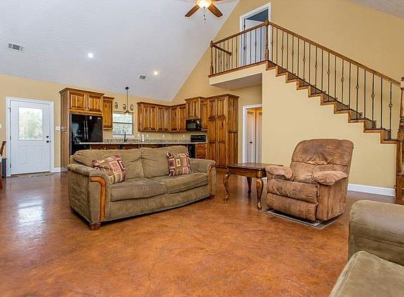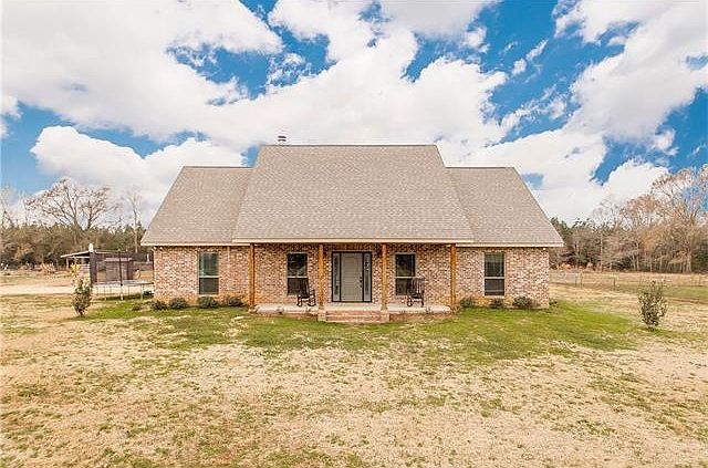 Country living at it's finest with this beautiful Acadian home on 10 glorious acres; fantastic open floor plan with cathedral ceilings; living room with fireplace, built-in cabinets; stained concrete floors throughout first floor; spacious kitchen with plenty of custom cabinets, center island, granite; lovely master with ensuite with dual vanities; great sized bedrooms; fish from your own pond; also listed as house with 20.23 acres as well as just 10.23 acres of land listed separately!