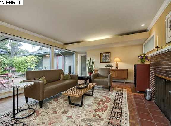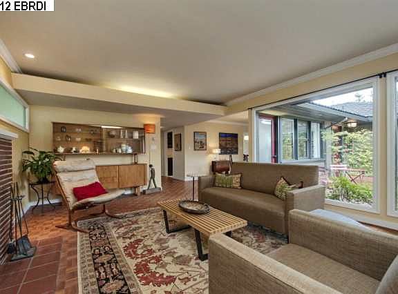 Stylish Mid-Century, Move-in ready, Sited on a serene nearly level lot w/ wonderful indoor/outdoor access to a charming courtyard garden. Cook's kitchen & baths have been beautifully remodeled. Cozy fireplace in the living room, Pretty hardwood floors, Separate laundry & Interior access from garage