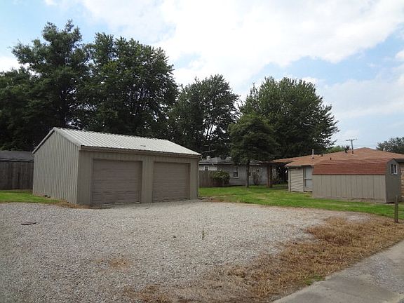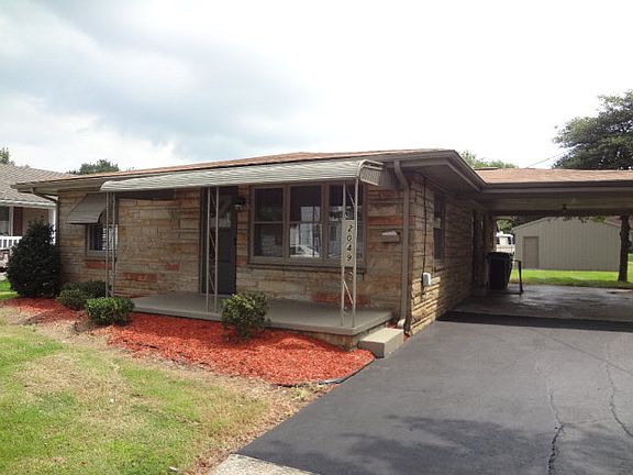 Several updated features. New carpeting, carport, nice two car detached garage, three bedroom, two baths, kitchen/dining/great room combo. 20x24 detached garage. Stone exterior and attached carport.
