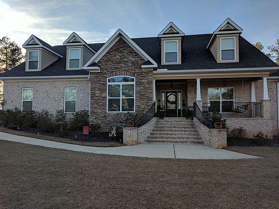 Fantastic brick home w/5 bedrooms & 4 bathrooms! Rocking chair front porch! Level one acre lot is perfect for swimming pool! Fresh interior paint! Hardwood floors throughout living areas! Open kitchen w/custom cabinets, under cabinet lighting, granite countertops, built in microwave & oven, cooktop,dishwasher & refrigerator may stay! Breakfast bar! Pantry! Amazing breakfast room w/built ins opens to living room w/ceiling fan! Glass doors lead to beautiful covered back patio w/ceiling fan! Owner suite on main level w/access to patio has private bathroom w/ceramic tile floor,custom dual vanities,jetted bathtub,shower w/bench plus huge walk in closet! Three guest bedrooms also on main level, one w/two closets & private bathroom & one w/access to the guest bathroom w/jetted bathtub! 5th bedroom could be great rec or craft room & also has full bathroom! Laundry room w/sink & cabinets plus washer & dryer may stay! Architectural shingles! 2 car attached garage! Conveniently located near I20!