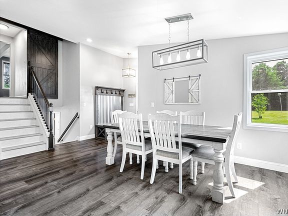 Lovely renovated raised ranch that is situated on 6.2 acres.This home has totally been updated within the past five years! New siding, front porch,new door, tear off roof,electrical panel,furnace,windows,central air conditioning, flooring,bathrooms and so much more! Enter through the front door with enough space for coats & shoes and leads you to the 1st level. All new flooring, fresh paint & fixtures throughout the entire home. Vaulted ceilings in dining & kitchen area, nice and open with gas fireplace.The kitchen has beautiful cabinets,granite counter tops,and Appliances Stay! Three good size bedrooms w/ fresh paint and new flooring. Large livingroom that leads to solarium. The basement has extra space & would make a great family room or rec room .Two full baths with stand up showers, one with jacuzzi tub. Laundry room is centrally located in the house. The two car attached garage have a newer electric door. Pole barn has 2 more additional garage spaces & would make a great workshop.The backyard has privacy to relax & watch wildlife. Driveway has a plenty of parking with an additional parking area .This home is located in Pembroke School District. Just minutes from NYS Thruway.