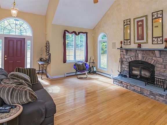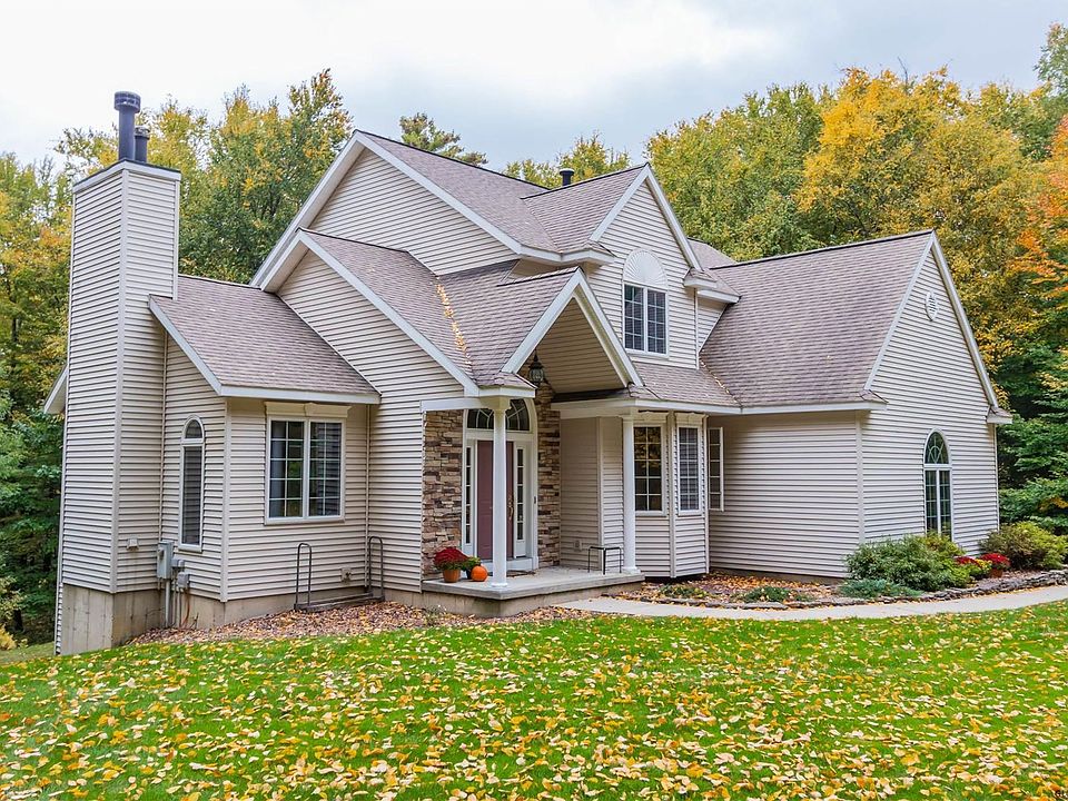 This stately Colonial style home offers privacy on 4.5+ acres. Boasting 2780+ square feet, there are five spacious bedrooms & 2.5 bathrooms, perfect for entertaining family and friends. Grand living room with wood burning fireplace & vaulted ceilings, opens nicely into the custom kitchen with granite counters, stainless steel appliances & large island. Formal dining room, perfect for special events. Convenient first floor laundry located in mudroom. Four bedrooms upstairs, including the owner's suite, with en-suite bath & walk-in closet. Finished basement has bedroom & family room with wood stove. Home offers exceptional details such as surround-sound, generator, zoned heating and central air. Relax outdoors with privacy, landscaped yard and short walk to 300' of creek front.