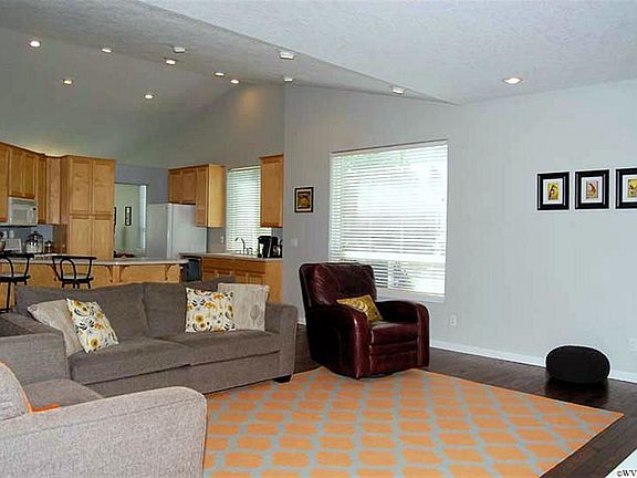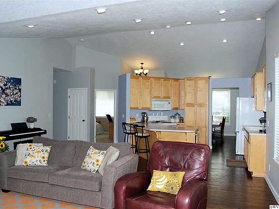 ESCAPE! Lovely home features open floor w/ living in the back. Great Rm w/ vaulted ceiling, large gas FP, & window box. Kitchen open to Great Rm for open living. Formal dining area. Living areas have wood flooring or carpet. Tiled baths. Private master w/ensuite bath & double closets. Solar panels provide current homeowner w/ elec bills @ about $8/mo year round! Private fenced yard! Come & get it!