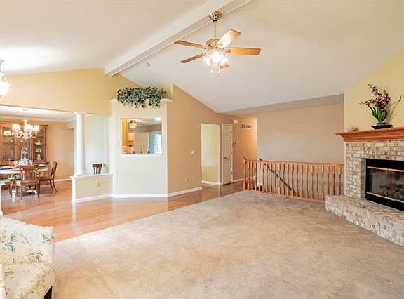 Wonderful ranch home with lots of mature landscaping. Nice entry foyer greats you with vaulted ceiling,cozy brick fireplace along with spacious separate dining room and bay windows. Large kitchen includes lots of cabinets and plenty of counter space with newer appliances. Right off the kitchen is a big 20x16 covered maintenance free deck along with swimming pool great for entertaing and family fun. Large master bedroom suite has walk in closet and ceiling fan. Master bath includes double bowl vanity with separate tub and shower. Finished lower level has big rec room / family room area with 1/2 bath and still has plenty of storage. Home is close to all of Wentzville shopping and restaurants. Check out this home it has lots to offer.