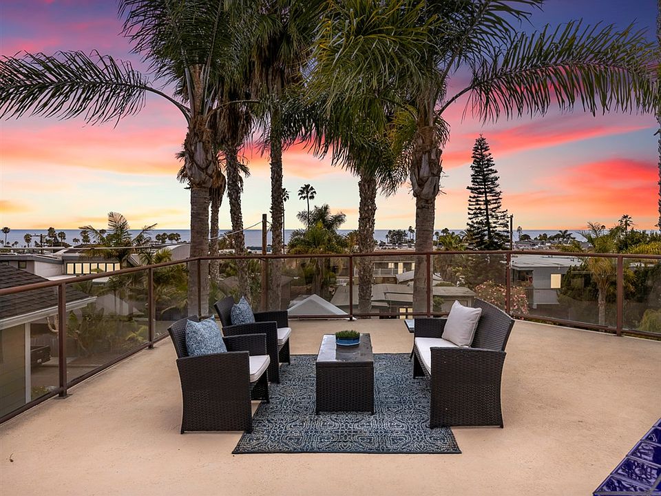 Bohemian at the Beach! Charm, character and style in a sought-after West of I-5 location that's a short walk to Seaside Market and Cardiff beach. Panoramic OCEAN VIEWS from the master suite, balcony and a HUGE roof top deck! High ceiling provide abundant natural light and the open floor is perfect for casual entertaining. Enjoy a peaceful, private courtyard and garden off the living room and secondary bedroom. A detached guest unit off the rear alley is a great way to earn some extra income. A rare gem!
