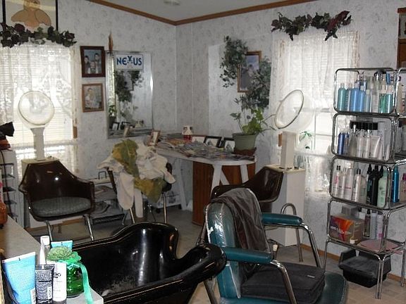 Awesome doublewide on permanent foundation. Currently 2 bedroom, 2 bath with a beauty shop. Zoned residential so if you needed it for a business you must live in it. Big kitchen with glass door and many extras. Major parking area and frontage on old 15.