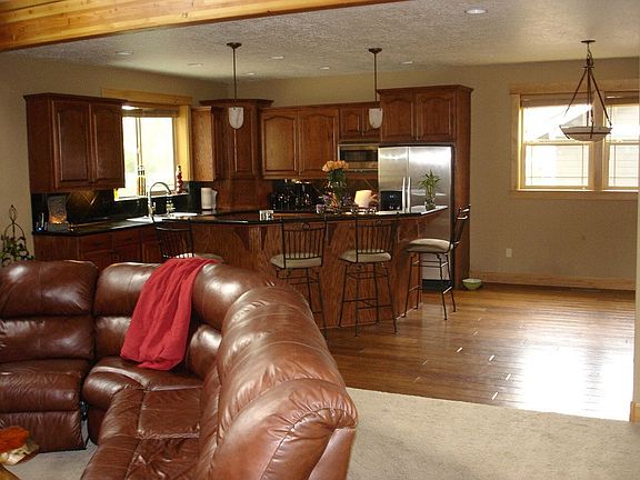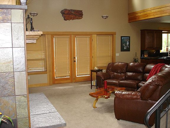 For more info, TXT 509177 to 555000 (Std msg and data rates apply. Text T1157 for terms) LODGE STYLE Home with beautifully open floor plan. Cedar vaults and slate surround fireplace with oak trimmed hearth. Kitchen has granite, stainless and hand scraped plank floors. Huge vaulted master suite on main with his walk-in closet. Master bath has jetted tub, tile rubbed bronze fixtures. Dramatic iron railing leads to upstairs landing/office. Much more! This is a must see!