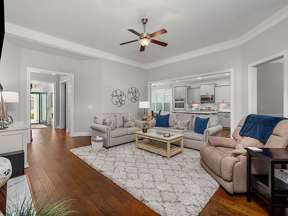 You will fall in love the moment you step into 2047 Suncrest Dr in the active coastal lifestyle community of Cresswind in The Market Common. This immaculate 4 BR/ 3.5 BA fully upgraded Hickory Floor Plan on a lush wooded lot is sure to impress. As you walk into the entry way, you are met with gleaming wainscoting and hardwood floors in this open concept floor plan filled with natural sunlight. The Carolina room off the great room is the perfect place to cozy up with a book and enjoy the peaceful views.  There are double crown moldings in the open living area with a gas fireplace. The Gourmet Kitchen with beautiful gray cabinets is spectacular and features a Double Oven and GE Café stainless steel appliances.  There is an abundance of cabinetry with bottom pull outs, and gorgeous quartz countertops with an expansive island that allows space for bar stools and the perfect place for family and friends to gather around. . You will have your very own Butler’s Pantry with additional cabinetry and a double door pantry for all of your storage needs. All cabinets have undermount lighting to high light the beautiful tile backsplash. A spacious kitchen nook is great for casual dining or opt for the beautiful Formal Dining Room with wainscoting to enjoy your meals. This home is perfect for entertaining.  Step outside onto the extended  patio fully equipped with a retractable awning with LED lights  to enjoy the beautiful wooded views. The Owner's Suite is sure to impress with it's sizable dimensions of 18'4x14'0, trey ceiling with fan and double door entry into the spa-like ensuite. The large corner tile shower is impressive in this grand bathroom. The granite topped double vanity is graced with many drawers and cabinetry for storage and includes a separate makeup table . The enormous walk in custom wardrobe will surely impress. There are two other bedrooms at the front of the home that share a large Jack and Jill bath with tiles shower/tub combo and have their own private sinks. There is a convenient powder room just off the main living area for your guests to use. The laundry room offers full sized washer & dryer, cabinetry and shelving for storage of supplies. A custom barn door accesses the entry to stairs for the 4th Bedroom or Bonus Room with a spacious closet, full bath, and entry into the floored attic area. This is the perfect place for guests to enjoy their privacy while visiting from out of town. An oversized 2 Car garage has ample storage space with pull down stairs to additional storage. Another major benefit to this beautiful home is there is little to no yard maintenance since the HOA fees cover the lawn care. Cresswind has spectacular amenities with a 12,000 sq ft resort-like Club House, a large fitness center, expansive pool, a hot tub, tennis courts and scheduled events. The HOA also includes cable, lawn care including mowing & irrigation. In Market Common you have everything you need just a golf cart ride away with the Atlantic Ocean, dining, shopping, a movie theater, grocery stores, medical center, walking trails, parks & a large dog park minutes away! Don't miss out on this beautiful home. Schedule your showing today!