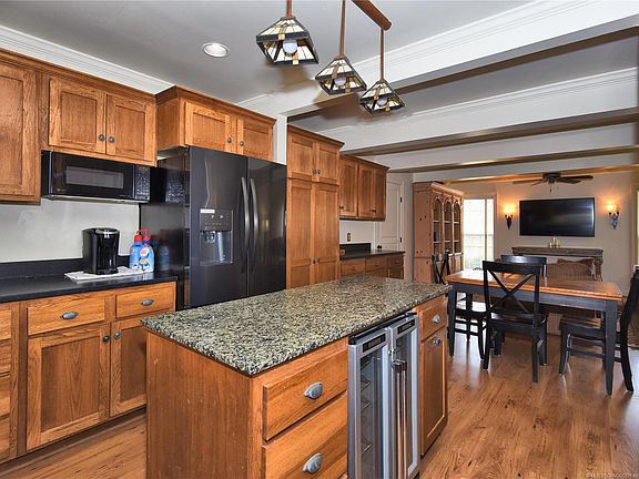 Well maintained home on .87 acres m/l. Jenks schools. Remodeled kitchen with craftsman style cabinets and granite, New paint throughout, Master bed down, two living areas, Large covered front porch. Additional lots available.