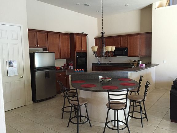 4 bedroom/4 full baths with an office and very large kitchen with island. Upstairs bedroom and full bath can be used as play area second master movie room. Large tile, wood floors, carpet on stairs. Laundry room with sink. Family room, formal living room and dining room area. Double garage and a golf cart garage. Upgraded, screened pool with working fountains and spa. No houses behind the property or to the left side. make us an offer.