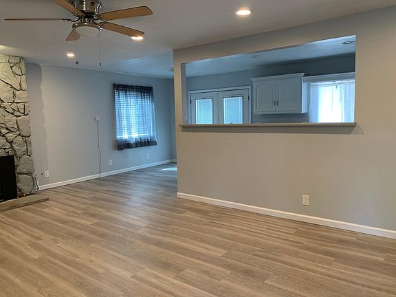 You wont want to pass this home up! Beautifully upgraded interior with hardwood laminate flooring, in country setting off Airport Road. Spacious living room with fireplace, just think of snuggling up in front of the gas fireplace with hot cocoa and cookies that you made in this lovely kitchen. Handsome newer counter-tops, electric range, dishwasher and refrigerator fill this kitchen will all you need. There is even a window over the kitchen sink that overlooks the back yard. Crisp white cabinetry offsets the light gray walls beautifully. Such fun decorating possibilities throughout this lovely 3 bedroom, 1 bath home. At approx 1150 sf, plenty of room to spread out. Nice sized carpeted bedrooms and closets. Master bedroom has french doors. Washer/dryer hookups with utility sink. You can enjoy the outdoors out of the direct heat/rain in this covered front patio. Fenced back yard. Garage. One dog considered on case by case basis. *all information deemed reliable but not guaranteed. Tenant responsible for all utilities Septic tank and well water One year lease, One dog considered (additional deposit would be required) Must have good rental history and credit Managed by Places & Spaces Property Management Cal DRE lic 01739653 One year lease. One dog considered on case by case basis. Tenant responsible for all yard care. Must have good rental history and credit