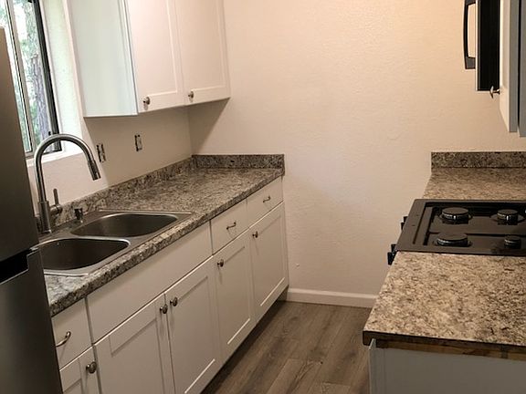 Quebec Apartments is a pretty setting in the pines. 20473 Quebec St. Unit #4 is an upstairs unit. The owner just completed a fresh remodel on this 2 bedroom 1 bath unit with all new luxury vinyl flooring in kitchen, living room and bathroom. All new carpet in bedrooms. Kitchen has stainless steel appliances, simulated granite countertops and a shaded view out the back from the kitchen sink. Just off the kitchen is a laundry area with hookups for a washer and a dryer. This complex is within walking distance to schools, shopping and just a quick jaunt to Hwy 299 for quick commuting. The complex has undergone a complete renovation. Owner pays for sewer, water and trash service. This is a NON-SMOKING facility. There is ZERO space to be used for storage on the outside of the buildings. Lease period is for a minimum of 1 year. Parking permitted in assigned parking only. Guests must use guest spaces only. Sorry NO DOGS ALLOWED in upstairs units.