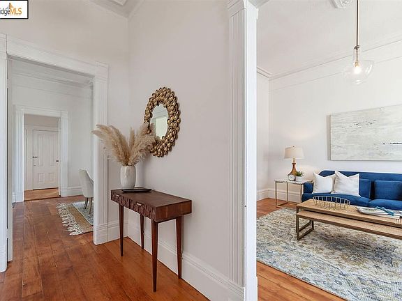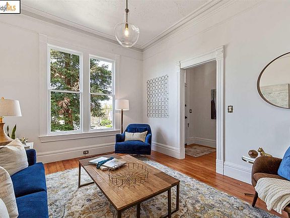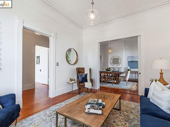 This 1900 Victorian gem evokes the grace and beauty of another era, and has been thoughtfully updated with modern comforts. Set high off the street and at the top of a grand set of steps, the house boasts a striking color palette that highlights the decorative trim and period details. Inside, the hardwood floors, soaring ceilings, crown molding and ceiling medallions imbue a sense of elegance and grace. Pocket doors separate the light filled living room from the spacious dining room with ornate marble fireplace. Two bedrooms and a family room round out the main floor, along with a big and bright kitchen with chef quality stainless appliances and a large quartz island. A deck leads to the grassy, private back yard perfect for entertaining or general play. Upstairs is a master bedroom with huge closets and updated bath, along with a large and bright sitting room and fourth bedroom. The basement is expansive with laundry hookups and lots of room for storage or a workshop.