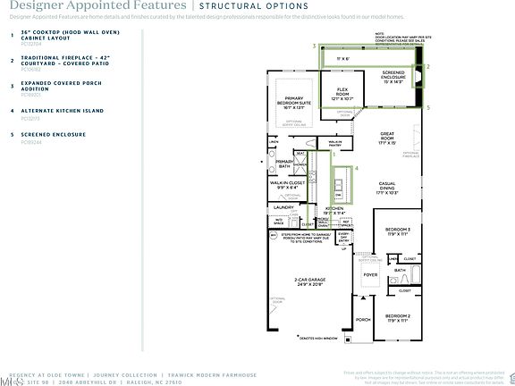 Welcome to luxury living in the heart of Regency at Olde Towne! Homesite 98 features the Trawick floorplan, boasting 3 beds, 2 baths, and 1,880+ sq. ft. of exquisite living space. Experience contemporary design with 9' stackable sliding doors leading to a covered, screened-in patio with a fireplace, perfect for year-round enjoyment. The casual dining area is the centerpiece, seamlessly connected to the gourmet kitchen and offering stunning views of the covered patio and rear yard. The office provides a tranquil space to work from home with a picturesque view of the outdoors. This home includes luxurious designer appointed features, ensuring comfort and accessibility. Discover the exceptional lifestyle that awaits you in this move-in ready home. Please contact Toll Brothers today to schedule your appointment and learn more about our inventory and incentives.