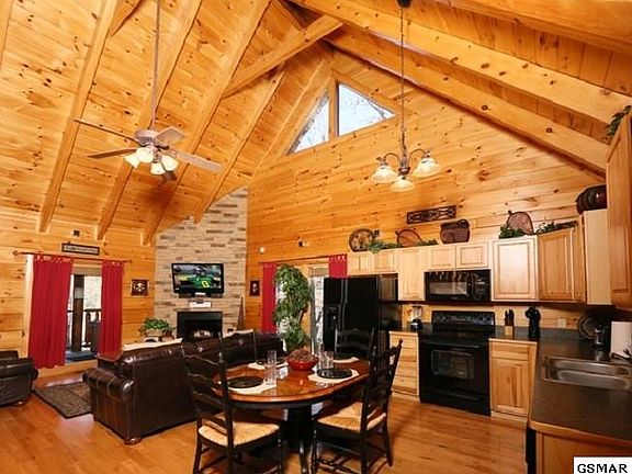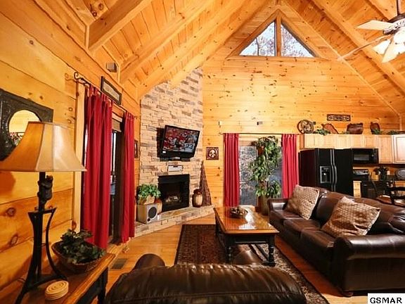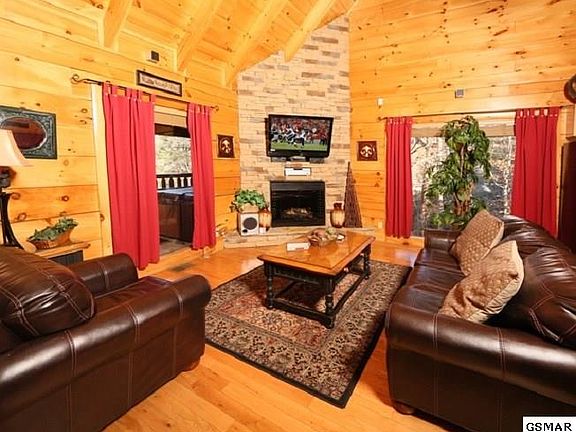 Luxuriously furnished 1 BR, 1.5 Bath log cabin in Prestigious Bear Creek Crossing, a gated community boasting a 65' waterfall, indoor/outdoor pools, miniature golf course and a play area for children. Sweet Surrender is a one bedroom cabin that sleeps 6. The master bedroom has a huge king-sized bed with a private Jacuzzi and fireplace as well as it s own private bath. There is a sleeper sofa in the loft area. The living room has a 42" HDTV with satellite, DVD player and complete surround sound, Back porch has a hot tub, swing, two rocking chairs, sauna, and a gas grill. Cabin is located just a few minutes from all the shopping, tourist attractions and dining. The rental numbers reflected have all fees and taxes taken out of the Gross Income, and are true figures. Cabin Name Sweet Surrender.