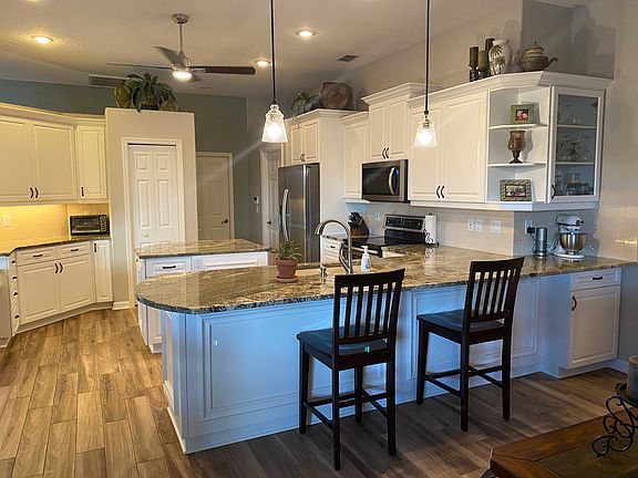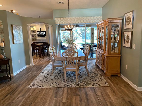 Exceptional curb appeal of lush landscaping and a beautiful covered entryway welcomes you to this stunning 4/3 single story pool home. Its spacious, flowing floor plan and comfortably elegant decor combines with a private retreat style enclosed solar heated pool with pebbletec, beach entry and hot tub spa plus patio area creating the indoor/outdoor Florida lifestyle you seek. Boasting $50K in upgrades, including new wood look tile flooring, all you'll need to do is move in and begin immediately enjoying living and entertaining in your dream Kitchen, adjacent Family Room with fireplace wrapped in built-in book case/cabinetry, formal and casual Dining Areas and Master Suite with luxurious ensuite Bath and sliding doors to pool area. Other features include: high ceilings, recessed lighting, upgraded light fixtures, arched doorways and windows, custom/staggered height Kitchen cabinets with crown molding, gleaming granite countertops including breakfast bar peninsula plus center island, pantry and stainless appliances. Water softener is included. Pasco County Water. Once you view this exceptionally detailed home, you'll absolutely want to make it your own!