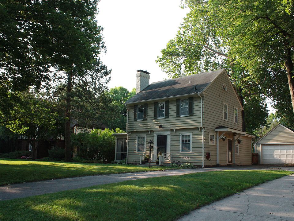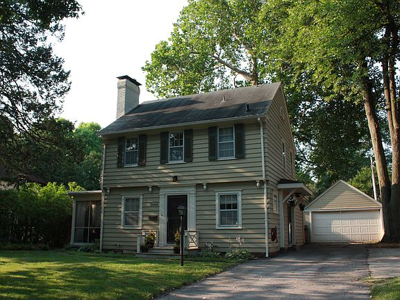 Classic Colonial Revival home. Original oak hardwood floors are throughout the formal living, dining and all three bedrooms. Carpeted den has built in bookcases and slider to access barbecue patio. Formal dining with built in corner curio sits adjacent the kitchen which has a large woodtop island that seats four. Two fireplaces give this home even more classic charm and character. Screened porch with outdoor patio for grilling and large fenced in yard with landscape and garden. New roof and leaf guard gutters in 2015. Recently painted. Beautiful neighborhood location close to ISU campus on professors row in the college heights district.