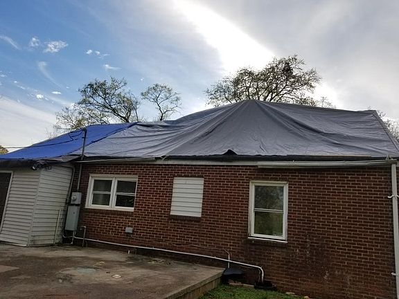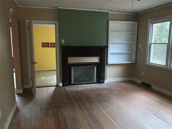 SOLD AS IS! Vinyl windows. Fireplace. Back door boarded. Roof has tarp due to previous damage. Kitchen with separate dining room. Storage building remains - as is.