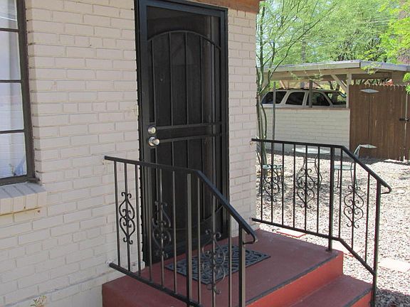 Sam Hughes 1057 sq. ft. vintage home with hardwood floors throughout is in great neighborhood just 2 short blocks to the university. Updated kitchen with newer appliances: gas stove, microwave, dishwasher & refrigerator. This duplex's laundry room has a washer & dryer with pantry storage. Newly refurbished tile bathroom & spacious bedrooms with walk-in closet. Separate dining room & living room looks out on the landscaped back yard. Private & fenced backyard with motion lighting & landscaped with Palo Verde & Mesquite trees for shade. Off street covered parking, and access to a storage room in a separate building at the back of the property that's perfect for your bikes and BBQ. Rent includes water, garbage, & gardener. New dual pane windows to be installed to help with energy efficiency
