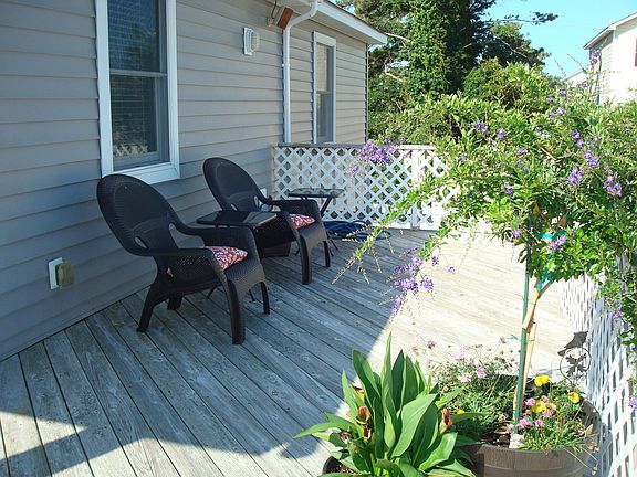 The floor plan of this house allows for a great single family home, or can be divided as rental space. Make some extra money. Turn key negotiable ONE YEAR HOME WARRANTY!! This lovely home is centrally located in the heart of Kill Devil Hills. It sits in a quiet neighborhood with mostly year round residents. Just one block from Bay Drive where you can enjoy spectacular sunsets as well as take advantage of the multi-use paved path. This home has a lot to offer at a great deal. It is spacious with lots storage that includes an attic. It also has a single car garage that leads to the bottom floor which has an interior stairwell so you don't have to get wet coming in. There is a large deck for your enjoyment and entertaining. The deck is gated so you don't have to worry about the kids or pets escaping. The home is a reverse floor plan with kitchen, dining, LR, hall closet, 1/2 bath and master up. Bamboo hardwoods and tile on the upper level. The kitchen features a pantry, mosaic tile backsplash and under cabinet lighting. There are 3 sun tubes to add natural light. Ceilings are high and add space and ambience. The master is huge with room for a reading/lounging nook and easily fits a King size bed. Walk-in closet with plenty of room. A rare find on the OBX. Downstairs there is a large room with cabinets, sink, & laundry. This is a fantastic bonus room that could be used as a kids play room, crafts, workout room, office etc. Hall closet, 2 bedrooms ( one with 2 closets and one of these is a small walk-in) and a full bath complete the downstairs. This lower level could be used as a mother-in-law suite. It has a hood for a stove and space for a refrigerator. A sink is already in place. Outside under the upper deck, is a shed, a beautiful outdoor shower, concrete space with room for some outdoor furniture or hammock for a lazy day nap. 2 gates; one to the front and one to the back yard finish this area. New commercial grade vinyl fencing surrounds the back yard which allows for some privacy as well as safety for children and pets. Half of the fenced in back yard has pea gravel. This is easy to maintain & great for entertaining. Sun sails included for some nice shade and relaxing! Glimpses of the sound throughout the house and yard is a bonus. This exceptional home has been very well maintained. Interior upstairs painted in 2017. Downstairs 2018. New bamboo flooring in master 2017. The rest of the hardwood flooring was refinished in 2017. Outdoor shower & bulkhead around the back of the house is new in 2017. The Dock Street boat ramp/dock is right around the corner. There are several sound accesses in walking distance & the path continues along the sound behind First Flight Ridge. Hayman Park is close by too with a nice playground for the kids. The Avalon Fishing pier and beach access is in walking distance as well. There is beach access parking of home owners in the Avalon area with a small association fee. Association fee is not required. Awesome sunrise views over the Ocean. 10 minute walk to the beach.