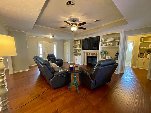 Updated and all new landscaping and everything you want. Separate floor plan, 3BD/2BA, double garage, large kitchen w/lots of cabinets, pantry, and breakfast bay with built-in seating. Dining room with wet bar. Living room has fireplace, built-ins, and tray ceiling. Large master with tray ceiling. Master bath has separate tub and shower, double sinks, and a walk-in closet. Large laundry room, covered back porch, inground pool, screened gazebo arbor, and a pool house. this home has lots of storage, including built-ins. One bedroom has a Murphy bed for extra space. Information is deemed reliable, but is not guaranteed.