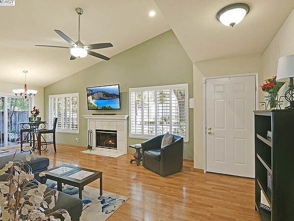 Beautiful end unit Townhouse located in Springtown and bordering on open green space. This is a beautiful quiet community with nearby walking trails, playgrounds and close proximity to shopping. This contemporary one story home features a vaulted ceiling with spacious living room. The living room features a wood burning fire place with adjoining dining area. Wood textured laminate flooring throughout the entire house with tile floors in the baths. The kitchen has granite countertops and looks out to the backyard. The shaded backyard with stone patio is ideal for eating or entertaining. A large finished 2 car garage with painted floors has abundant storage cabinets along one wall. The exterior and three interior rooms have been painted. New water heater, led lighting fixtures, and ceiling fans. Appliances included. HOA fees reported to be $265/month.
