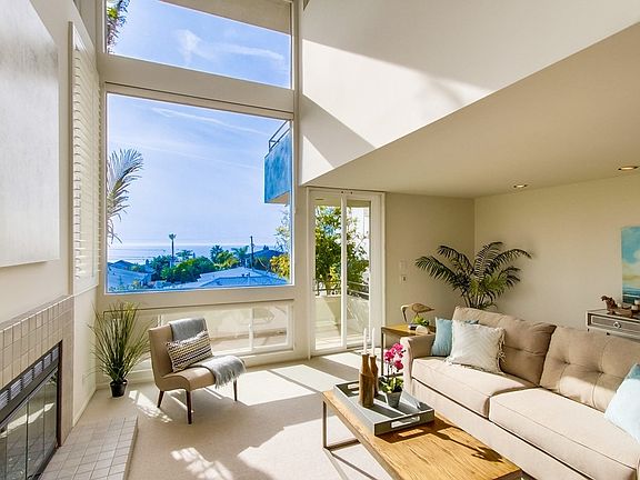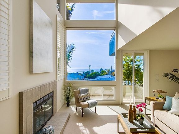 The Ocean View you've been waiting for! Enjoy gorgeous sunrises and green flash sunsets from your spacious living room, master bedroom, master bath and balconies. Designed by renowned architect Josh Addison, this contemporary split level home features dramatic vaulted ceilings, numerous windows, skylights, wood floor, fireplace, 2-car garage, large patio with fountain, succulents and lemon/lime trees. Located in the Walking District of Cardiff, close to beaches, restaurants, parks and Seaside Market.