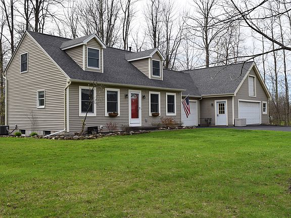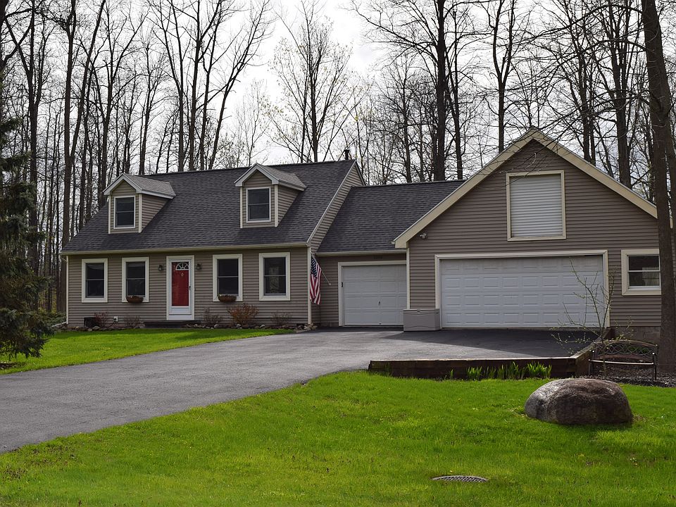 Located off a private road on a quiet wooded lot, this beautifully landscaped home awaits. The bright and cheery eat in kitchen has hardwoods, plenty of cabinetry, counter space, and pantry, with brand new stainless steel appliances that are negotiable in sale. A newly remodeled bathroom on first floor. Spacious second floor master suite. Master bath has a shower and soaking jet tub. Storage in every room. Full basement. Outside, the attached 3.5 car garage offers lots of storage. New roof.