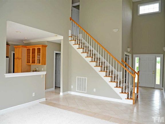 Stunning home situated on a 1.26 acre lot nestled in a quiet cul-de-sac. 1st floor master suite with a walk in closet, garden tub, and walk in shower. Family room offers vaulted ceilings and opens into the airy kitchen with spacious peninsula. Kitchen offers solid surface counter tops, recessed lighting, tile floors & backsplash. Sliding glass door opens out to the spacious deck overlooking the secluded fenced-in backyard. Upstairs offers two additional bedrooms and an office. Convenient to Wake Forest!