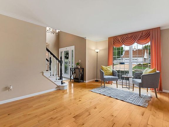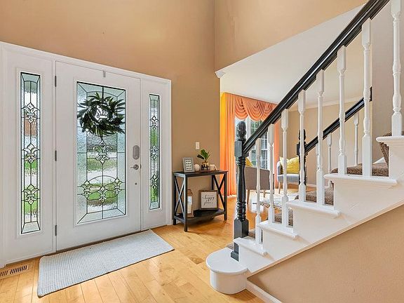 Welcome! Walking in you are met with a grand entry foyer with bright hardwood floors and beautiful staircase leading upstairs. The main level is complete with main floor laundry, formal dining, a formal sitting room with crown molding, cozy living room with fireplace and bay windows to enjoy natural light as well as look out over your fenced in back yard. The kitchen has plenty of space to cook and entertain with custom cabinetry, a center island, and bar area all with granite counters as well as a skylight to add even more natural light! The eat in area of the kitchen leads out to a large shaded deck for those backyard bbqs! Upstairs you'll find a full hall bath and 3 bedrooms as well as a grand primary bedroom complete with vaulted ceilings, walk in closet and en-suite bathroom with separate shower and soaking tub! Don't forget the partially finished walk out lower level! All located in a beautiful neighborhood with mature trees and sidewalks to enjoy a stroll!