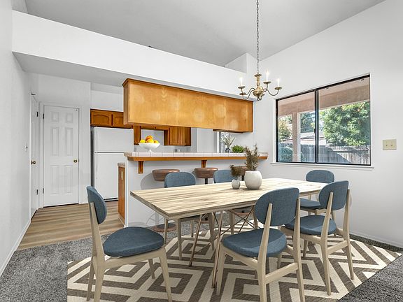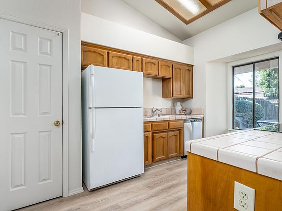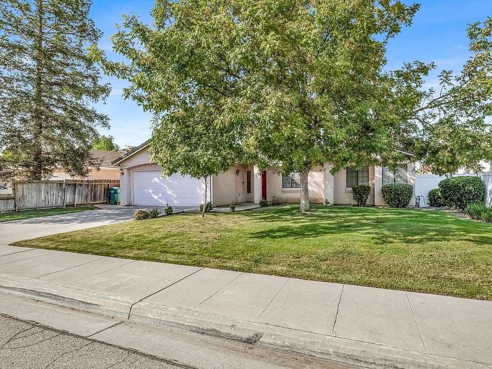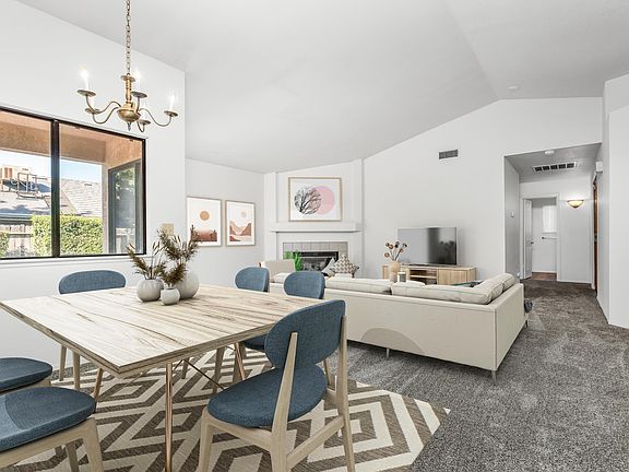 Welcome to this truly exquisite and enchanting 3-bedroom, 2-bathroom home! As you step inside, you'll be immediately captivated by the allure of freshly laid, gleaming flooring that spans throughout the entire house. The newly painted interior beckons you in with its sophisticated charm, creating an ambiance that feels bright and airy.The heart of this home is the open living/dining room, where elegant vaulted ceilings soar above the fireplace, allowing natural light to cascade in and illuminate the space. This home seamlessly blends comfort and style, making it an ideal setting for creating lasting memories.All three bedrooms are situated on the west side of the home. The third bedroom offers versatility and can serve as an office or den. The guest rooms are oriented towards the front of the house, benefiting from the natural shade provided by the large tree visible through the windows.As you make your way to the backyard, you'll be greeted by a covered patio and green landscaping. The expansive yard is perfect for tranquil moments and outdoor gatherings.