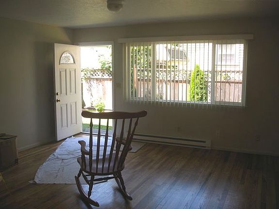 This classic single-level duplex on a quiet street offers you a clean and bright home with attractive secluded grounds managed and maintained by us, the owners. The large living room has a freshly refinished natural hardwood floor and bright picture window. With a total living area of 720 sq ft, it includes a kitchen/dining area, one large and one small bedroom (both w/ closets), bathroom, and bonus hallway closet. One block to Denver Avenue, Kenton's charming original downtown, and you’ll have small independent coffee shops, boutiques, restaurants, public library, Disjecta arts center and more to enjoy. Kenton Park, a bank and post office round out the hip and local community atmosphere. Two blocks from the Max line and near New Seasons Market, PCC and University of Portland. $1010 per month. Deposits: last month's rent plus $600 returnable security and cleaning deposit. Good references required. No pets, no smoking on property. Available now. Call (503) 236-5310 or email for viewing and application. • Freshly painted throughout & cabinets in good condition • New shower • Hardwood oak floor in living room, carpets in bedrooms. • Recent electric range and fridge • Front load washer and dryer (in unit) • Green features: energy-efficient windows, enhanced insulation. Gated garden provides quiet privacy with trees, lawn and plantings maintained by owner. Each unit has its own private backyard patio area and off-street parking spot. Access: Good walkability! (streetsmart walk score 89/100) MAX: Yellow line. 22 mins to downtown. Buses: #6, #4 Stores: 0.6 miles to Fred Meyer, 1.2 miles to New Seasons Market. Restaurants: Cup & Saucer Café, Posie's, Kenton Pub, Esan Thai, and Pizza Fino. Post Office: Kenton Station Farmers market June-Sept Friday pm More info: www.portlandneighborhood.com/kenton.html Neighborhood Description Vibrant walk/bike friendly