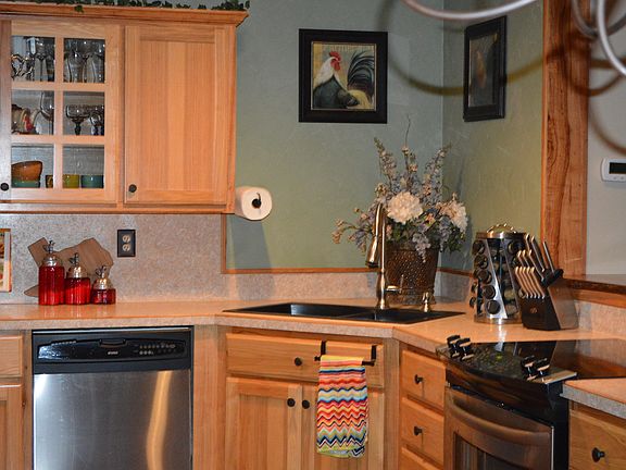Lovely country home on 5 acres with endless updates! Green metal roof '09, total kitchen remodel with hickory cabinets & stainless appliances, granite sink, walnut bar, gorgeous master bath with bowl sink & huge tiled shower with bench, all fixtures & fans. New a/c and hot water heater. Other amenities include laminate flooring, dual sinks in guest bath, fireplace, walnut mantle, covered patio, fenced yard, great sunset view and a workshop on slab. Call 940-337-6459 if interested.