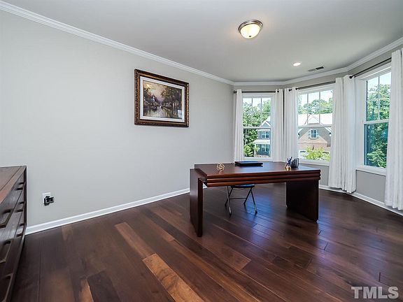 Barely 1 year old brick-front home filled w/ upgrades on east-facing cul-de-sac lot. Districted to top-rated schools. Hardwoods on main level. Open-concept w/ 2-story foyer & family room, open staircase, & catwalk - so much natural light! Upgraded kitchen w/ plenty of cabinet & counter space. Sunroom for extra common area year-round. Master suite w/ sitting room, tiled shower, & garden tub. Laundry room connected to master suite. Minutes to Cary shopping, dining, & 540 access. Community pool too!