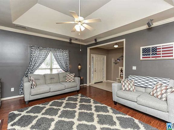 Beautiful Ivy Place home in the heart of Moody features NEW stainless steel appliances, manicured landscaping, huge covered porch and fenced yard with wooded view! Spacious living room boasts gleaming wood floors, cozy wood-burning fireplace, soaring tray ceiling and mounted surround sound speakers. Fantastic kitchen has all new Frigidaire appliances, island, pantry and breakfast nook overlooking the expansive covered porch with ceiling fan. Separate dining room with wainscoting and crown molding flows effortlessly into the kitchen and living area, providing just the right amount of open concept. Spacious master bedroom with tray ceiling and walk-in closet complements the large master bath with double sinks, garden tub and separate shower. Two additional bedrooms, a second full bath, walk-in laundry room with shelving and a table-top backyard round out this turn-key dream. Don't miss out on low maintenance, one-level living at its finest!