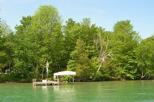 BUILDING LOT, with Guest Cottage. SWIM, BOAT, GOLF, SKI. Centralized location. Watch your new Lake Home being built from the screened porch of the Guest cottage. (unfurnished with: 2 bedrooms, 1 1/2 bath, including stove, refrigerator, washer (2006) & dryer. One car tuck under garage, and detached 2 car garage, great for boat storage.) 5" Well (1998) 2.25+ acre parcel, located between Camp Michigania and Mackinaw State Forest Land. Sandy lake bottom, with gradual descent, great for swimming and boating.
