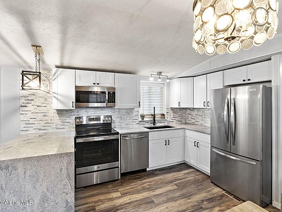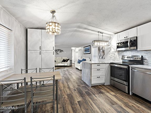 CENTRALLY LOCATED IN COEUR D'ALENE! Completely Remodeled Inside and Outside Manufactured Home on leased land in Oak Crest! 2 bedrooms, 2 baths. Furniture included as shown, all stainless steel appliances including Washer/Dryer. The park offers amenities; Clubhouse, Swimming Pool, New Playground, BBQ Pavilion, and Pickleball Court.