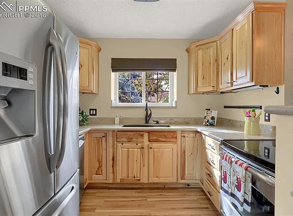 Move-in ready, updated home in desirable District 20 close to Chapel Hills Mall, I-25, Air Force Academy, walking trails and parks! Enter the home and notice the abundant natural light that flows throughout! High-end Hickory floors are on every level of the home and there are too many upgrades to name! The living room has large windows with limestone ledges and a gas fireplace with unique glass surround to enjoy during the cold weather. The updated kitchen has high end stainless steel appliances, limestone countertops, undermount lighting, and hickory cabinets with crown molding!There is a dining area adjacent to the kitchen with a walk-out to the deck making it ideal for grilling and outdoor entertaining! The staircases leading to the upper and lower levels have been updated with iron spindles and the same hickory flooring! The upper level has 2 bedrooms, one with it's own access to the updated bathroom with a skylight to let in even more light! The lower level has a 3rd bedroom that can be used as the master suite should you wish and the laundry area - washer and dryer stay! The fully-fenced backyard has plenty of space for the family to enjoy and even a storage shed to stay organized! Enjoy getting into your warm car on winter days in your heated garage! This home has so much to offer and won't last long! Come take a look and fall in love!