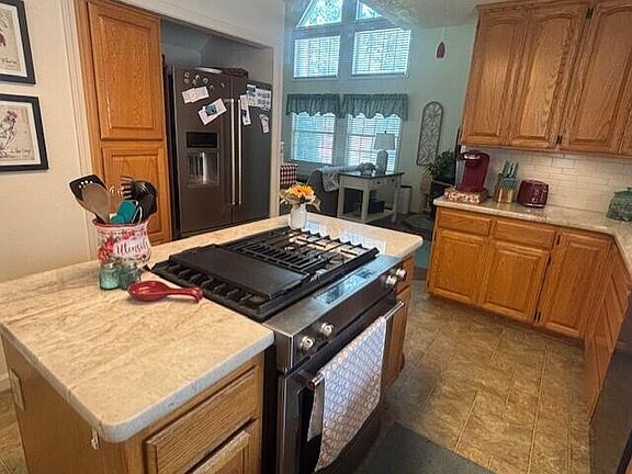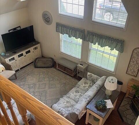 Meticulously Maintained 2-Bedroom Home with Bonus Room. This beautifully cared-for home offers 2 bedrooms, 2 bathrooms, and a versatile bonus/craft room that can easily serve as a third bedroom. The open-concept layout features soaring vaulted ceilings and expansive windows that fill the living space with natural light. Upstairs, the spacious primary suite includes ample room for an office or hobby area, a generous walk-in closet with built-in shelving, and a large en-suite bathroom with dual sinks. A private balcony off the primary bedroom provides the perfect spot to relax outdoors. The kitchen flows seamlessly into the dining and living areas and features granite countertops, a gas range/oven, and quality cabinetry. Just off the kitchen, a covered deck with a BBQ area makes entertaining easy.