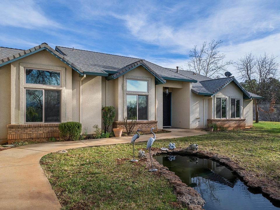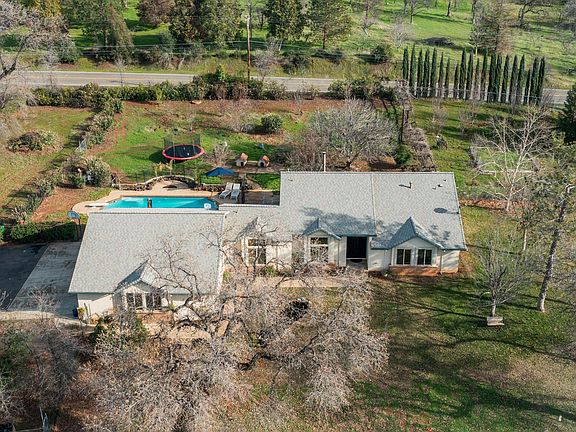 Immaculate Custom home on 5.75 irrigated private acres. Enjoy the Salt Water Pool, Pond, and gated entry!Home remodeled in 2019 - 40 yr. roof, update master bath & new windows. Offers 10' ceilings, crown molding, gourmet Granite Island and counters, central vac, whole hs fan, formal living & family room. Oversized 4 car garage with Tons of Storage. Large Barn with Plenty of room for an Arena. Fenced and cross fenced. Full office & 3rd full bath room in garage off pool or 4th Bedroom depending on what you need. 20X33 RV-Barn for boat/tractor/RV, and a 16' x 12' shed with loft. This home is 1 mile to Shasta College, close to shopping and Shasta Lake - A County setting close to town, a must see.