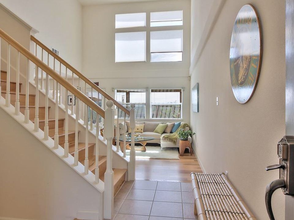Beautiful 1285sq feet house Palomares Hills in Castro Valley 2beds 2.5 baths desirable townhome Beautifully maintained, brand new hardwood flooring, gas stove in kitchen, high ceilings with fireplace in living room, full bathrooms with each bedroom upstairs,two car attached garage, beautiful backyard with a spectacular view of open space and hills, very unique setting Amenities of the community: 2 Community pools Park Basketball courts Tennis courts Club house Hiking trails
