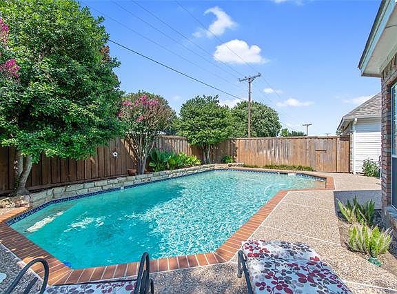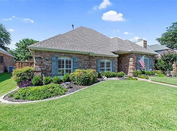 West Plano Beauty, You still have time to enjoy your back yard with beautiful, refreshing pool during these Hot Summer days nestled in the heart of Plano among custom homes, trees and hills. Very open floor plan with grand entry hall of 6 x 14' with 10 ft ceilings, crown moldings, hardwood flooring in entry, formal living room, formal dining, and family room. All the bedrooms, study (4th BR) and 2 hallways also have wood flooring. All bedrooms have ceiling fans with lights. The master bedroom has a vaulted ceiling, baywindow and door to the patio. A beautiful skylight was added to the kitchen which also features stainless builtin combo microwave and oven, Bosch dishwasher, double stainless sink with beautiful granite counter tops and stone backsplash + breakfast bar and ceramic tile flooring. Both baths have double sinks and master bath has a separate walk in shower and a vaulted ceiling. Plantation Shutters on the front windows, FR: 2 fireplaces with gas logs, storage in garage