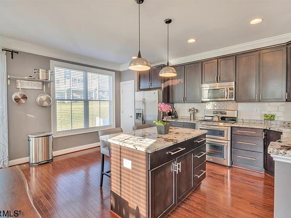 Gorgeous SUN FILLED end unit TOWNHOME (âCHATHAMâ model) in AVINITY - minutes from DOWNTOWN. GOURMET kitchen with stainless appliances, GRANITE countertops, MAPLE cabinets, ISLAND, and dinette opens into the large living room with GAS FIREPLACE, recessed lights and double doors opening onto the second story front sitting PORCH. Cheerful MASTER SUITE is filled with NATURAL LIGHT and the ensuite MASTER BATH includes a double vanity and gorgeous TILE FLOORS. 3 additional bedrooms, 2.5 baths, large FAMILY ROOM/REC ROOM on the terrace level and little details throughout including: CROWN MOULDING, tile backsplash, over CABINET LIGHTING, back PATIO, and additional storage with a pull down ATTIC.