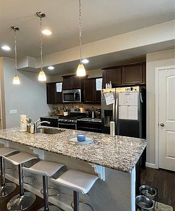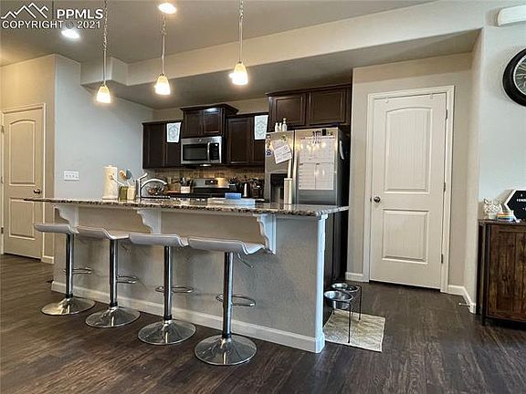 This incredible open concept & functional Waterford floor plan gives buyers a chance to have one of the most affordable new build town homes in all of El Paso County! Conveniently located to downtown, military bases, I-25, shopping areas & more. Homeowners will love all the included amenities at an affordable HOA - outdoor salt water pool, dog park, dog/car wash, playground, gym & more. The Townes at Polaris Peak community provides a low maintenance life style at a very affordable HOA. Included with the HOA is exterior maintenance/insurance, snow/trash removal, and all the community amentities - club house, fitness center, business area, kids corner, outdoor salt water pool, 3500 SQFT dog park, dog/car wash, playground, & more. This home showcases fantastic features and upgrades throughout including Granite kitchen counter tops Tile back splash in kitchen Stainless steal appliances - gas range, dishwasher, microwave HUGE kitchen island Wood laminate flooring throughout the main level Dual vanity in the master bath Walk-in closets in all bedrooms & more!