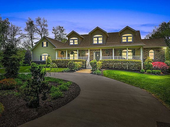 Curb Appeal Galore and Custom Home Comforts all rolled into One! This beautiful CapeCod home sits on 10.77 acres of private pleasing views. Appealing landscaped yards with stunning gardens, hardscape and a custom concrete pool within a fenced-in backyard takes up approximately 1.5 acres giving privacy and stunning views to the rest of the property. The location of the home is conveniently located close to 140 but far enough away to give privacy and solitude. The The home is a custom built wood frame house with natural wood doors and window frames throughout. The large front porch welcomes you to this home. As you walk in the front door you step into a spacious well lite foyer with slate flooring. You are then welcomed into the Great Room with a vaulted ceiling, ceiling fan, sky lights and is adorned with stunning wood floors and floor to ceiling stone fireplace. The fireplace has been converted to a pellet stove for economical and comfort heating. Off the great room is a Large Master Bedroom and Bath which are conveniently located on the first floor. The Master Bedroom has a sliding door to a covered area of the back porch with great views. A stand alone shower, large jetted hot tub, double vanity and tile floor describe the master bath. Off the foyer is a beautiful wood staircase that takes you to the second floor. The second floor offers two spacious bedrooms along with a full bath all on separate HVAC units. The eat-in kitchen has a new high efficiency refrigerator and dishwasher. There is a great bar/eating area along with a separate large dining room. This then leads into a good sized screened in porch perfect for lounging and dining. The back of the home has a large back porch with wide steps leading down to the pool area and fenced in backyard. A fire pit and solar powered torches are throughout the backyard for fun evenings around the pool. Outside the fenced-in backyard is a large storage shed with siding to match the house. A Bose system is wired throughout the home to include the backyard for great entertaining. The home is also wired with a full security system. Located above the spacious attached garage is a 650 square foot bonus room which could be used as an office or recreational room. Downstairs is a handsome finished basement with a stunning full wet bar for a seating of six around the granite bar top with custom cabinets and glass shelving. There is a floor to ceiling fireplace area with a free standing wood store. Included is a full entertainment center including a surround sound Bose system. There is also a full bathroom to include a urinal. Adjacent to this area is a separate finished room. This spacious room is ideal for a work-out area or playroom for the kids. The back area of the basement is unfinished and is a great area for a workshop and storage. Included is lots of open shelving and a full size freezer. The home is on well water which is then filtered through a state of the art filtering system. The filtering system includes a reverse osmosis system to the kitchen sink and the refrigerator for perfect drinking water. The system has been recently been updated and serviced. This home is a well built home in pristine condition, has amazing upgrades and is conveniently located.