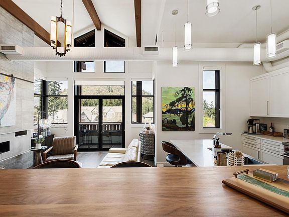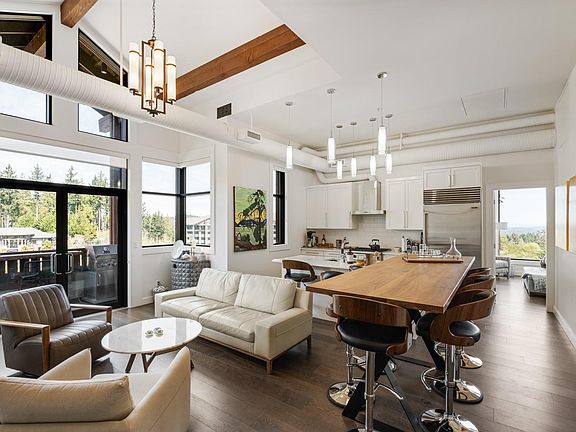 Step into refined elegance with this luxury executive suite in the prestigious Lofts at Bear Mountain. Designer-inspired residence features soaring 16-ft vaulted ceilings that elevate the open-concept living space, creating an airy, light-filled ambiance perfect for both relaxation & entertaining. Gourmet kitchen is a chef’s dream, seamlessly blending style & functionality. Retreat to the enviable primary suite, complete with a spa-like ensuite & generous walk-in closet for the ultimate in comfort & convenience. In suite laundry for added convenience. A spacious 2nd bedroom & full bathroom offer flexibility for guests or a home office. Unwind on the private balcony and take in the stunning, unobstructed views. Prime location with an abundance of amenities within walking distance, including Bear Mt Golf Resort & Spa, Fitness Centre, an array of dining options, shops & endless nature trails to explore. Elevated living at its finest.